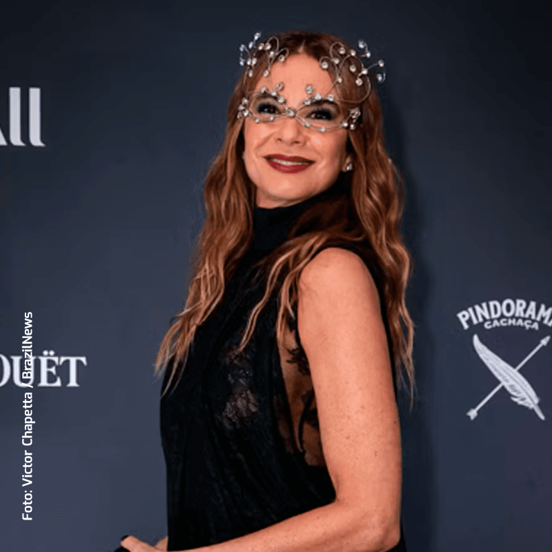 A prova de que os óculos quebraram a barreira do “acessório diurno” veio com Luciana Gimenez. No prestigiado Baile de Máscaras do Fairmont, no Rio de Janeiro, a apresentadora apostou em um modelo cravejado com pedras brilhantes para compor seu look de gala. Para o lojista, o insight é valioso: há uma demanda crescente por peças ornamentadas que funcionam como joias, ideais para eventos noturnos e ocasiões de luxo.