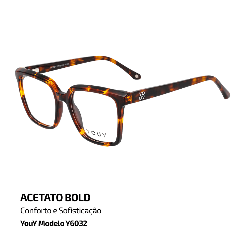 A linha de óculos em acetato da YouY combina design refinado com materiais de qualidade. Esses modelos oferecem resistência e um acabamento diferenciado. Com tonalidades discretas e elegantes, são perfeitos para quem valoriza estilo e sofisticação.