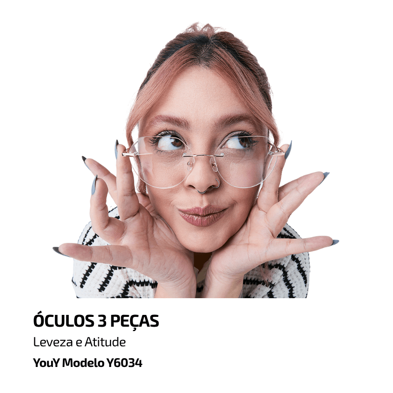Os óculos 3 peças são tendência e conquistam por sua leveza e elegância! Um design que valoriza o olhar e deixa o rosto em evidência com minimalismo e sofisticação.