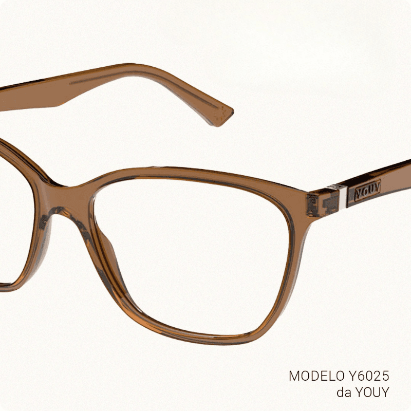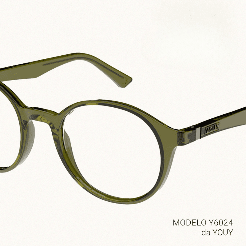 Os tons que já fazem sucesso nas vitrines também estão em evidência nas armações da YouY. O verde, que foi destaque desde o início do ano em eventos como a MIDO, marca presença no modelo Y6024, enquanto o tom Mocha Mousse — eleito a cor do ano — se revela no moderno Y6025.